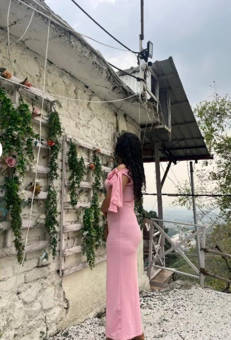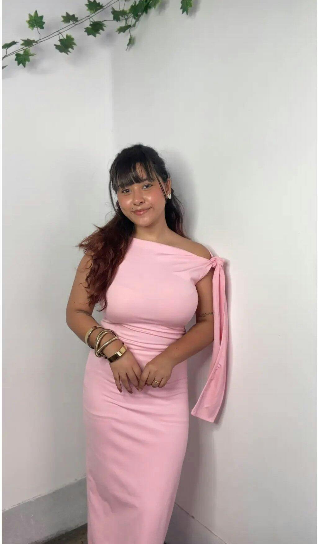 Pink Solid Tie Up Maxi Dress
