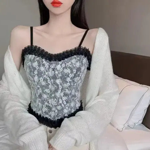 Name : U & C Sexy Women's Adjustable Strap Fashionable Sleeveless Bra Style Padded Camisoles Lace Fancy Crop Top Black
